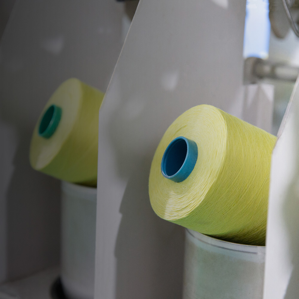科旭專注于高性能紗線生產(chǎn)25年,擁有從纖維預(yù)處理、開松、梳理、成條、粗紗、細(xì)紗、絡(luò)筒、倍捻到定型的全流程生產(chǎn)線。我們在棉花纖維、化學(xué)纖維、金屬纖維、礦物纖維等方面有著豐富的使用和研發(fā)經(jīng)驗,儲備了大量成熟的紗線方案。主要產(chǎn)品涵蓋功能性棉紗(棉包滌綸/棉包尼龍/棉包鋼絲)、阻燃紗線(預(yù)氧絲紗線/芳綸阻燃紗/腈棉阻燃紗/芳粘阻燃紗/阻燃縫紉線)、耐高溫紗線(芳綸復(fù)合紗/PBO紗/PI紗/金屬復(fù)合紗)以及各類耐切割紗線,廣泛應(yīng)用于PPE、工業(yè)防護等特種高性能紡織品領(lǐng)域。