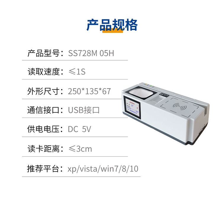 (*由于產(chǎn)品升級或其他原因,神思社保卡讀卡器SS728-M05H產(chǎn)品實際參數(shù)有可能變更,以實際產(chǎn)品為準。本文中的所有陳述、信息和建議也不構成任何明示或暗示的擔保)
